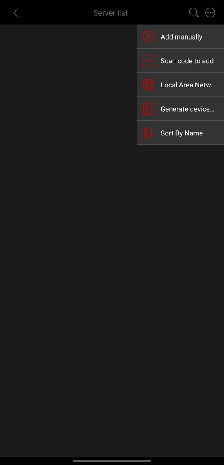- You'll find an empty server list. From here you can click on the circle with 3 dots inside it. (Top right corner)